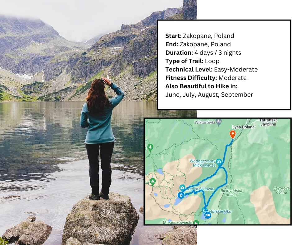 This 4-day loop trail will take you through dramatic landscapes, past Wielka Siklawa, the highest waterfall in the Polish Tatras, and Morskie Oko, the largest lake in the region. Expect jaw-dropping views, pristine alpine lakes, and a serene hiking experience in one of Europe’s hidden gems.
