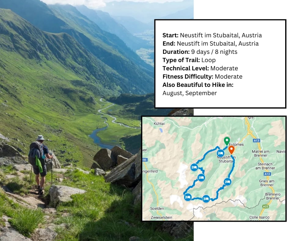 If you’re looking for a challenge with jaw-dropping views and experience the Alps in their full glory, the Stubai High Trail is the one!